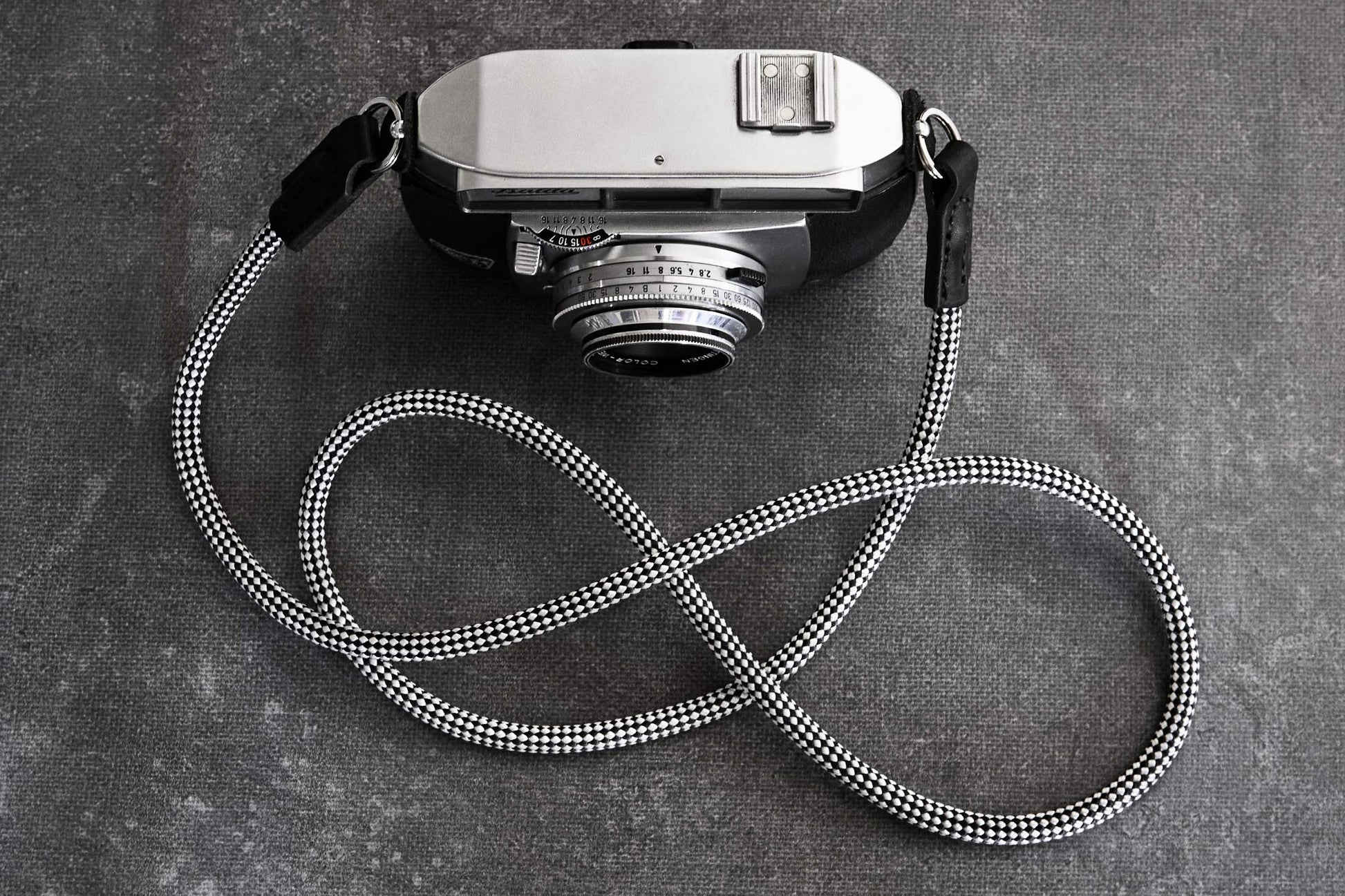 The Audrey is our classic camera strap handmade with soft black Italian leather and black and white checkered rope. Available in four lengths they are the perfect companion for your film, street or travel camera.
